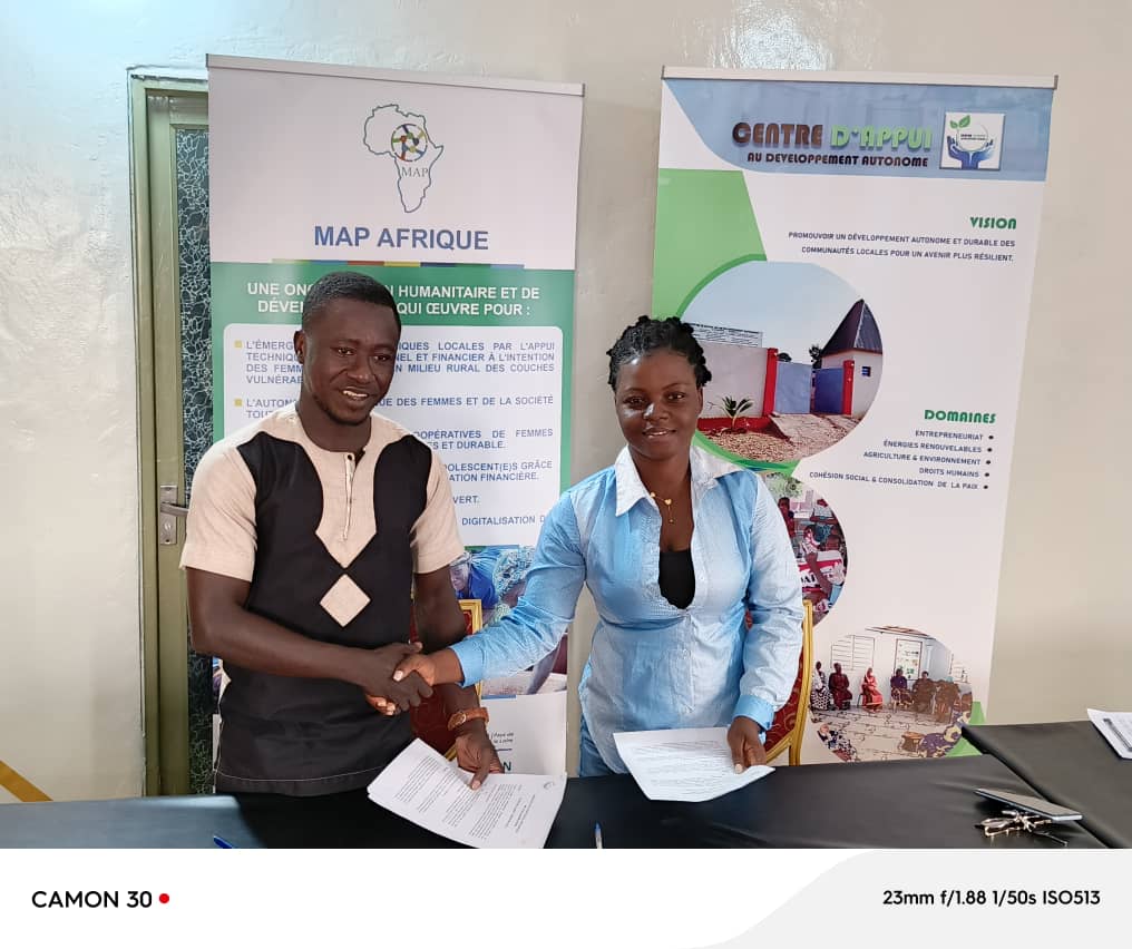 Cet accord a été signé par Véronique EYE, Directrice Exécutive de CADA-ONG, et Pierre SAGHI, Président de MAP Afrique.